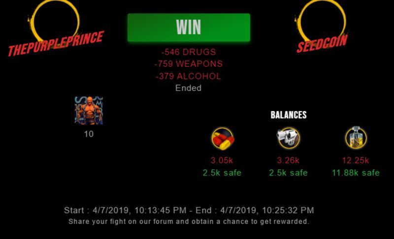 Congratulations @thepurpleprince ! Your fight received an upvote of 2.8% from the King Dealer as incentive for your activity and as a gratitude for your support to the game.