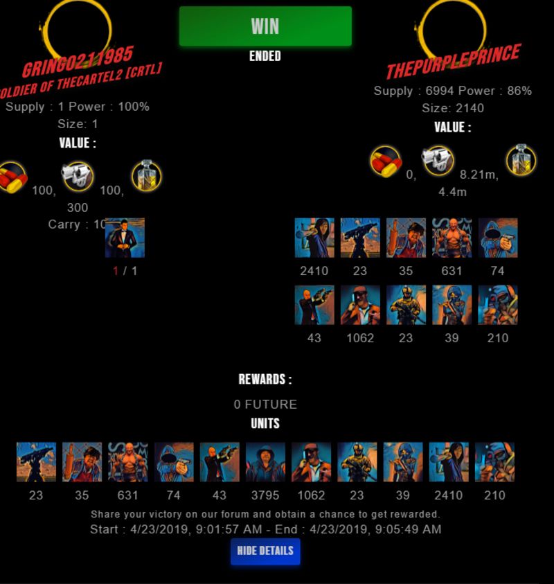 Check my latest fight ! gringo211985 vs thepurpleprincethepurpleprince (43)in #drugwars-fight • 7 years ago #gaming #fight #dw