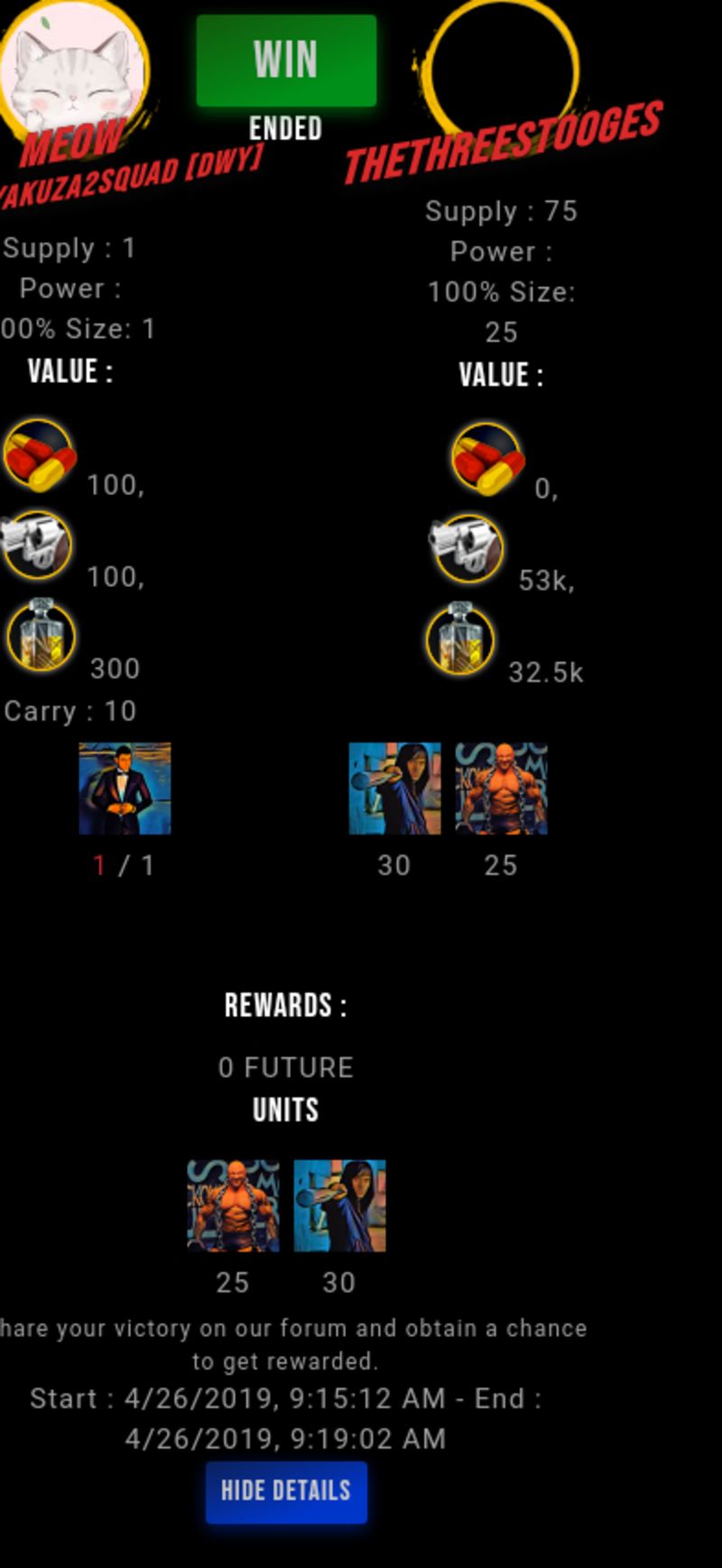 Check my latest fight ! meow vs thethreestoogesthethreestooges (42)in #drugwars-fight • 7 years ago #gaming #fight #dw