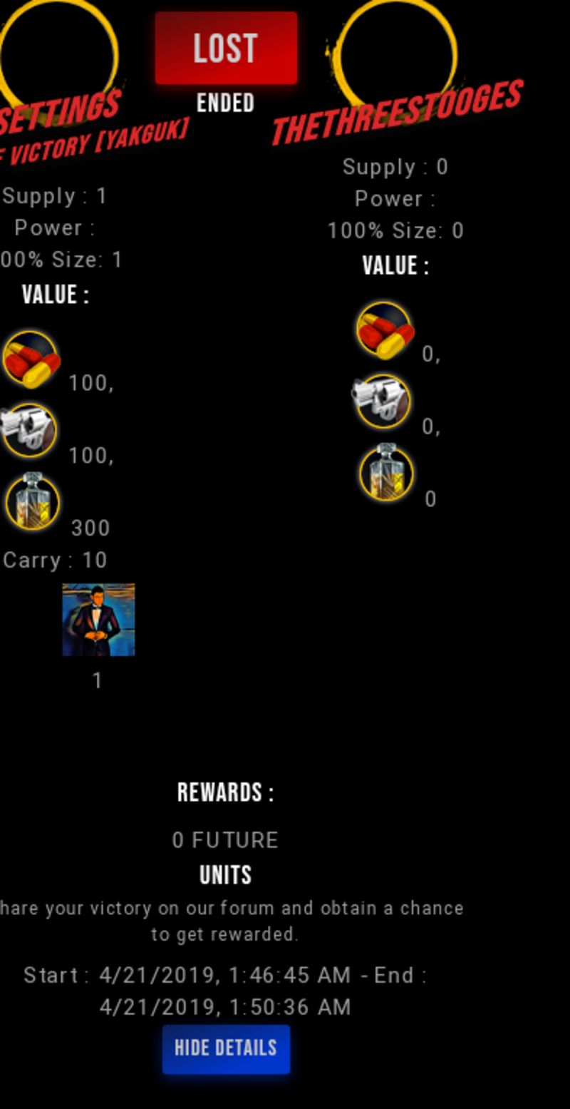 Check my latest fight ! settings vs thethreestoogesthethreestooges (42)in #drugwars-fight • 7 years ago #gaming #fight #dw