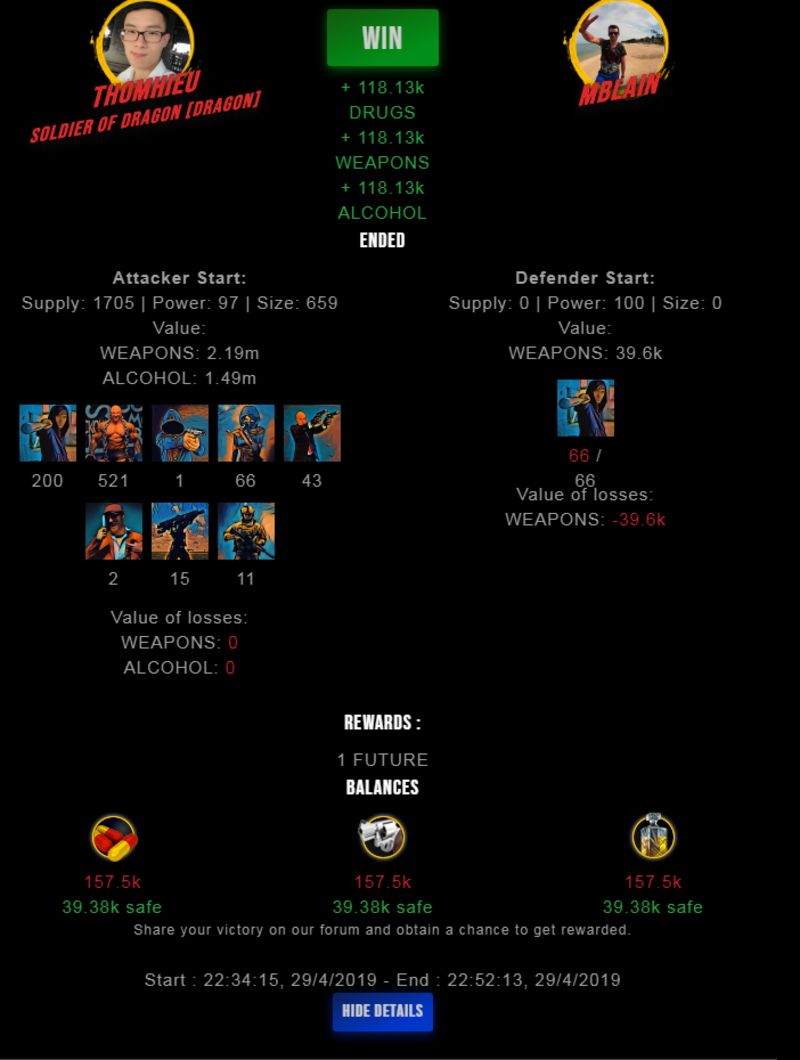 Check my latest fight ! thomhieu vs mblainthomhieu (58)in #drugwars-fight • 7 years ago #gaming #fight #dw