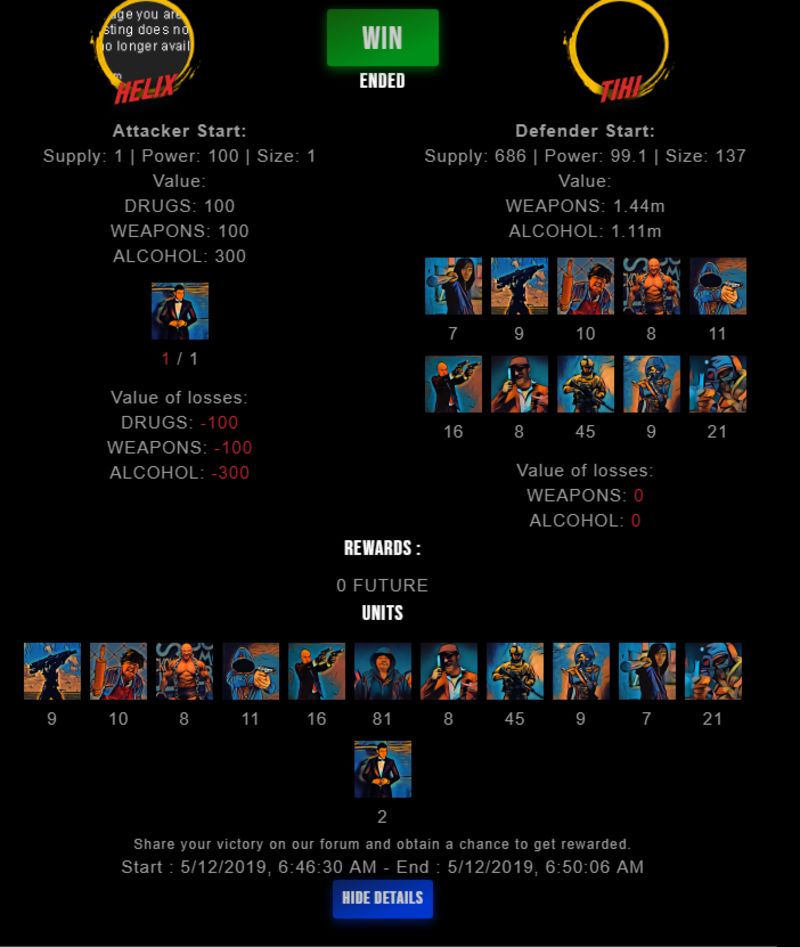 Congratulations @tihi ! Your fight received an upvote of 2.8% from the King Dealer as incentive for your activity and as a gratitude for your support to the game. Want to know more about DrugWars.io?