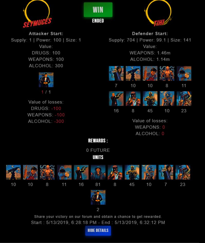 Congratulations @tihi ! Your fight received an upvote of 2.9% from the King Dealer as incentive for your activity and as a gratitude for your support to the game.