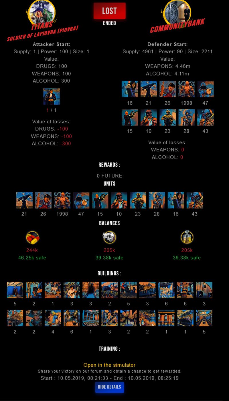 Congratulations @titans ! Your fight received an upvote of 3.7% from the King Dealer as incentive for your activity and as a gratitude for your support to the game.