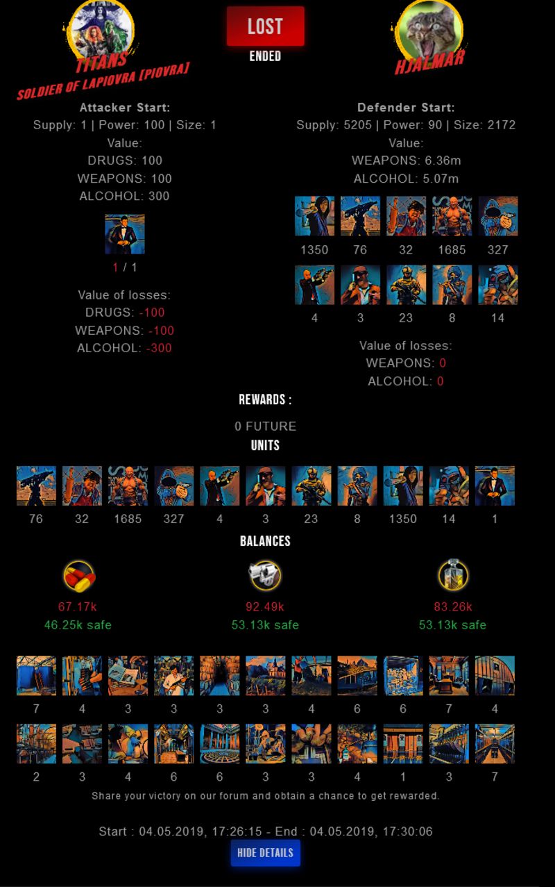 Check my latest fight ! titans vs hjalmartitans (61)in #drugwars-fight • 7 years ago #gaming #fight #dw