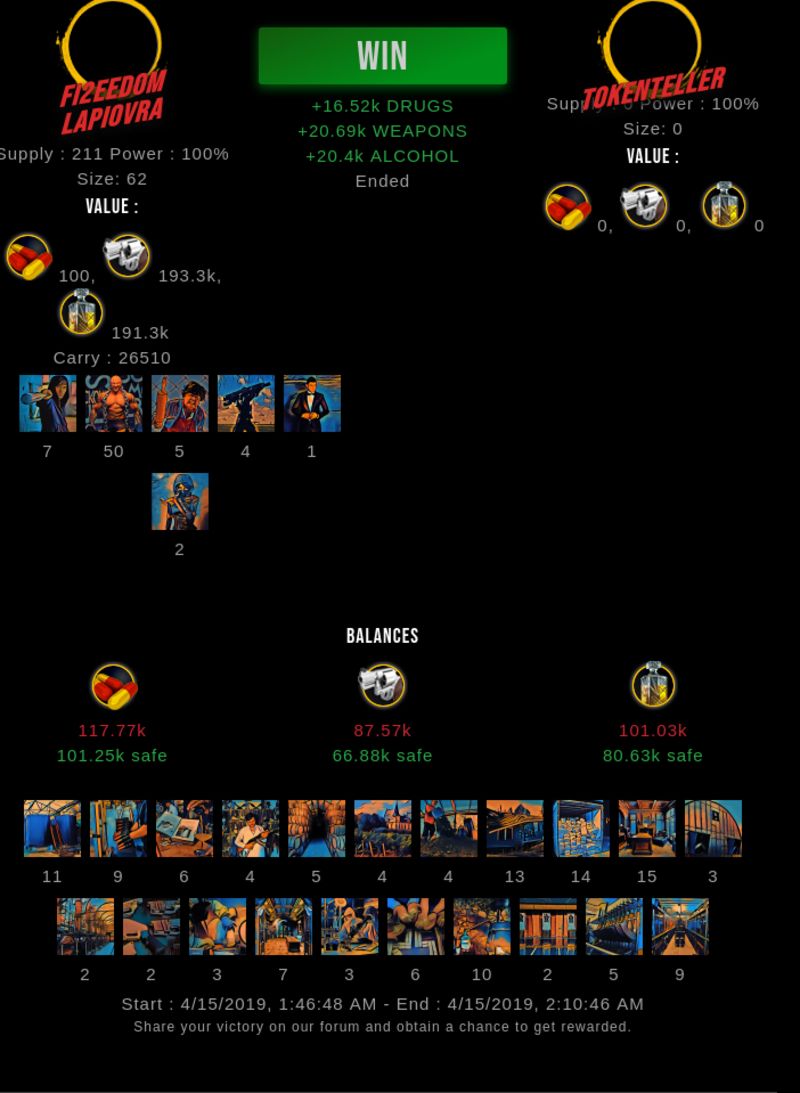 Check my latest fight ! fi2eedom vs undefinedtokenteller (42)in #drugwars-fight • 7 years ago #gaming #fight #dw