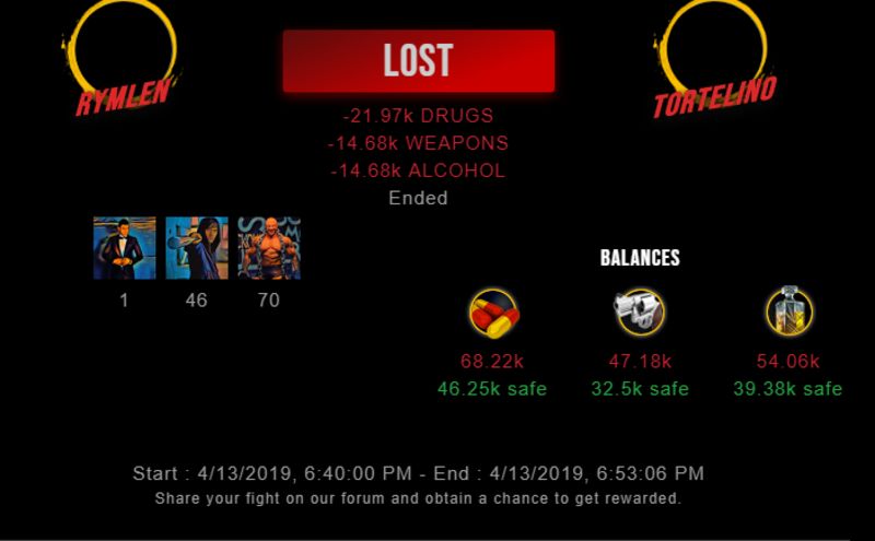Check my latest fight ! rymlen vs tortelinotortelino (45)in #drugwars-fight • 7 years ago #gaming #fight #dw