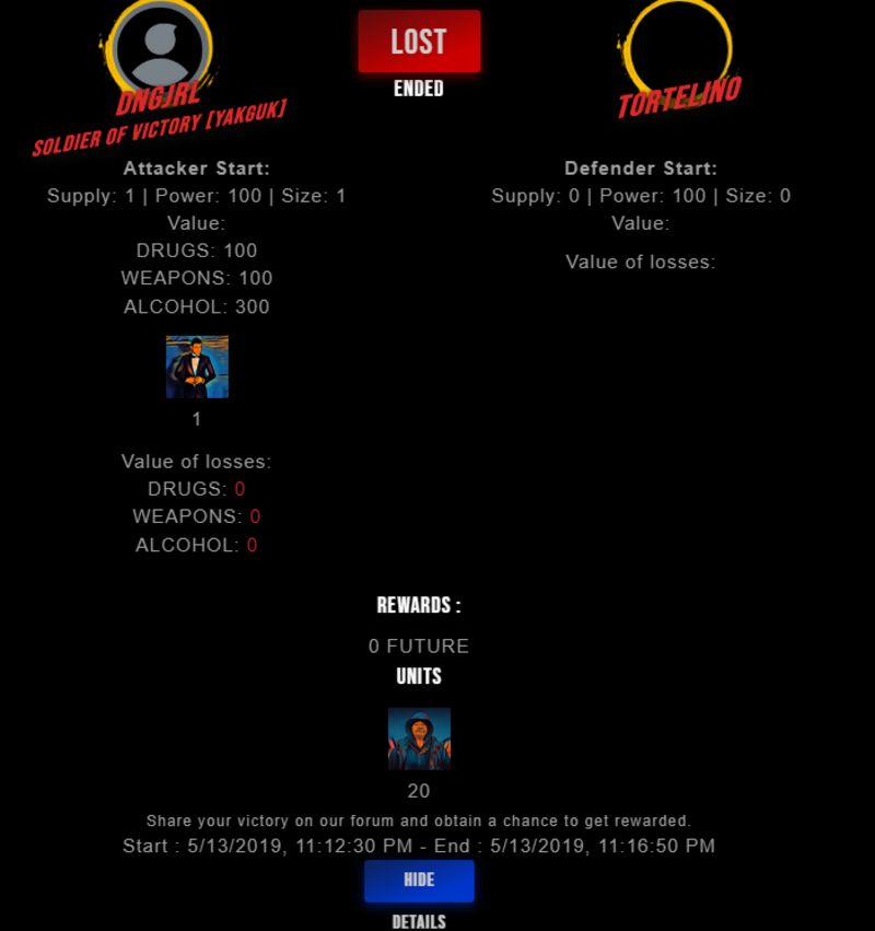 Congratulations @tortelino ! Your fight received an upvote of 2% from the King Dealer as incentive for your activity and as a gratitude for your support to the game.