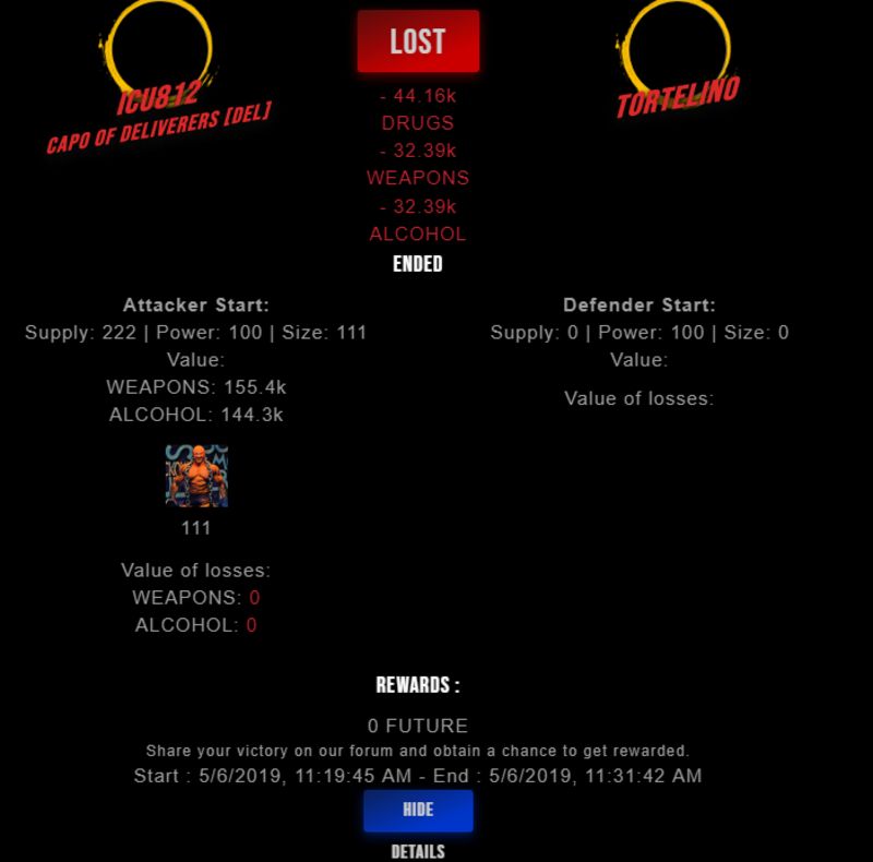 Check my latest fight ! icu812 vs tortelinotortelino (45)in #drugwars-fight • 7 years ago #gaming #fight #dw