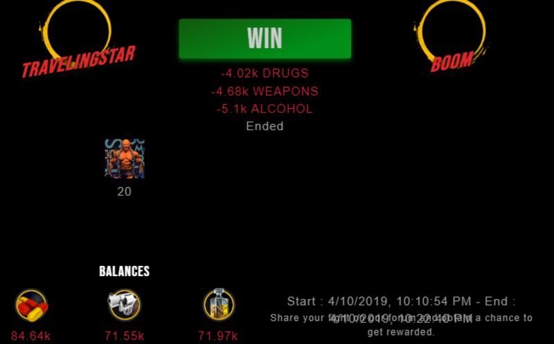 Check my latest fight ! travelingstar vs b00mtravelingstar (40)in #drugwars-fight • 7 years ago #gaming #fight #dw