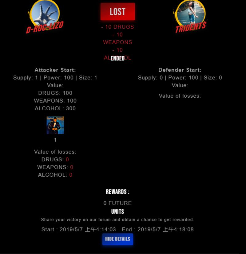 Check my latest fight ! d-roc-lizo vs tridentstridents (25)in #drugwars-fight • 7 years ago #gaming #fight #dw