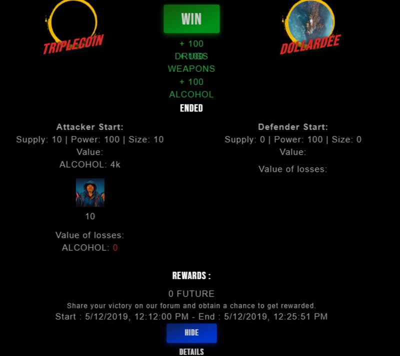 Congratulations @triplecoin ! Your fight received an upvote of 2.3% from the King Dealer as incentive for your activity and as a gratitude for your support to the game.