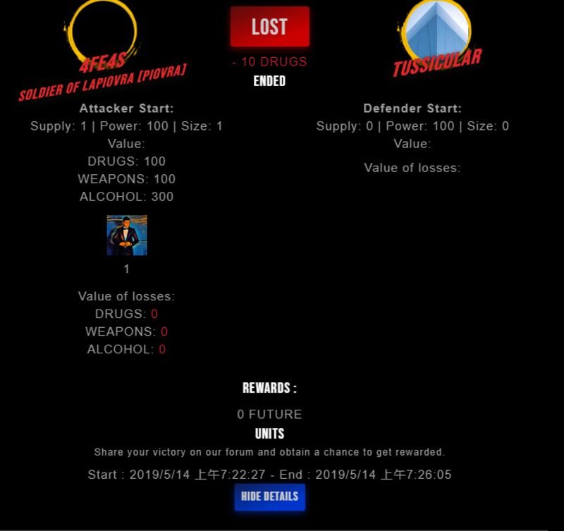 Check my latest fight ! 4fe4s vs tussiculartussicular (26)in #drugwars-fight • 7 years ago #gaming #fight #dw