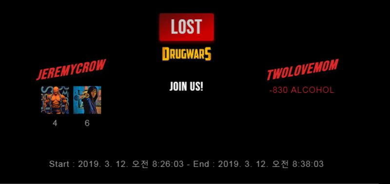 Check my latest fight ! jeremycrow vs twolovemomtwolovemom (35)in #drugwars-fight • 7 years ago #gaming #fight #dw