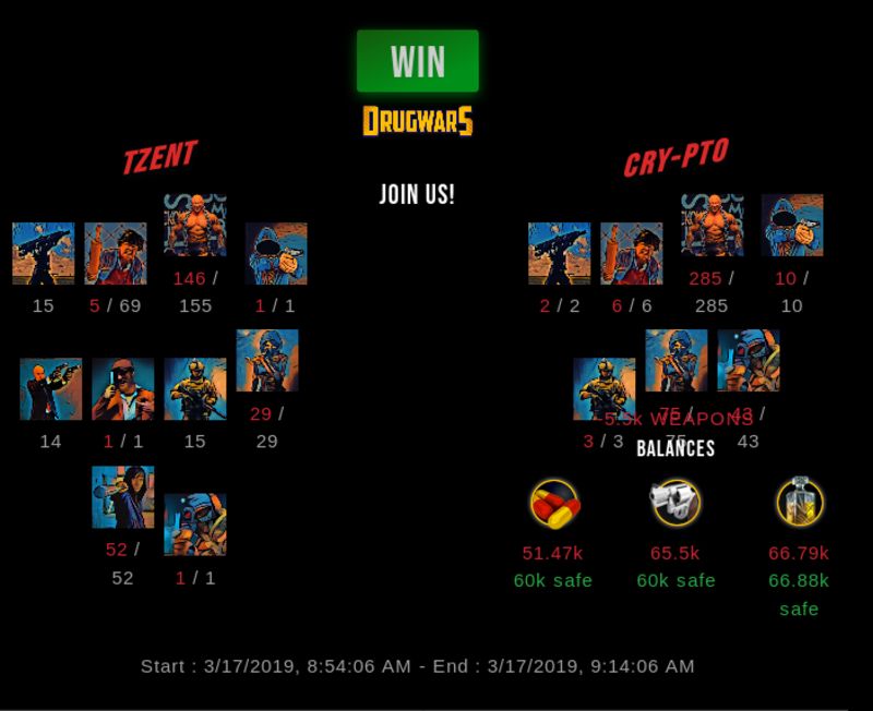 Check my latest fight ! tzent vs cry-ptotzent (39)in #drugwars-fight • 7 years ago #gaming #fight #dw