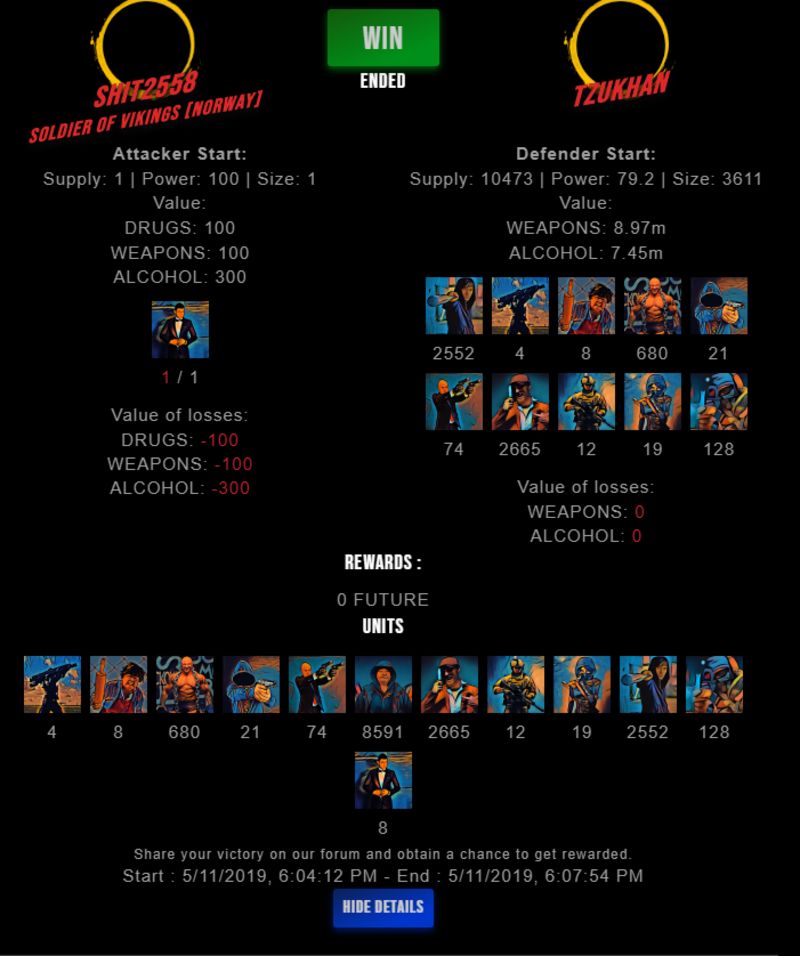 Congratulations @tzukhan ! Your fight received an upvote of 18% from the Dealer as incentive for your activity and as a gratitude for your support to the game.