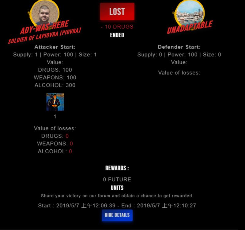 Congratulations @unadaptable ! Your fight received an upvote of 10% from the Dealer as incentive for your activity and as a gratitude for your support to the game.