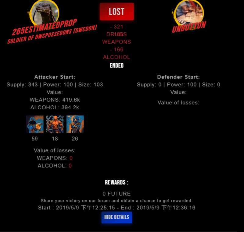 Check my latest fight ! 265estimatedpr0p vs unbuttonunbutton (26)in #drugwars-fight • 7 years ago #gaming #fight #dw
