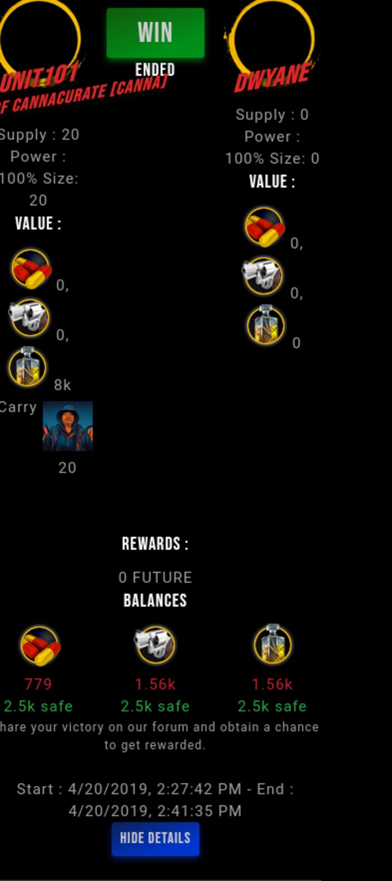 Check my latest fight ! unit101 vs dwyaneunit101 (55)in #drugwars-fight • 7 years ago #gaming #fight #dw