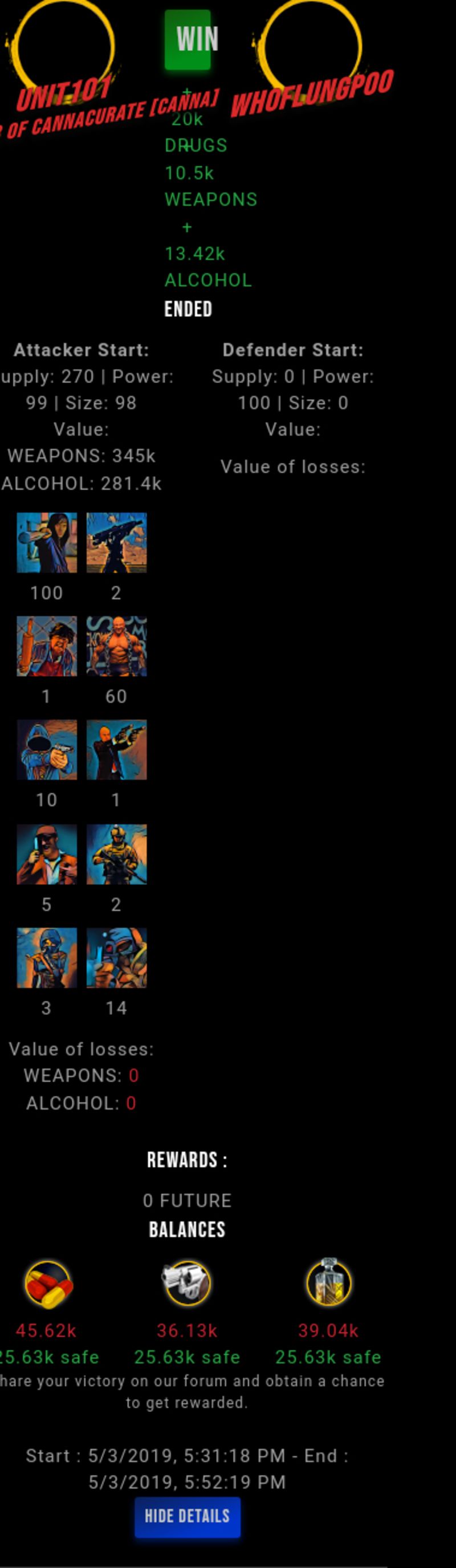 Check my latest fight ! unit101 vs whoflungpoounit101 (55)in #drugwars-fight • 7 years ago #gaming #fight #dw