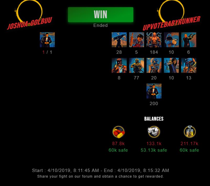 Congratulations @upvotebabyrunner ! Your fight received an upvote of 1.1% from the King Dealer as incentive for your activity and as a gratitude for your support to the game.