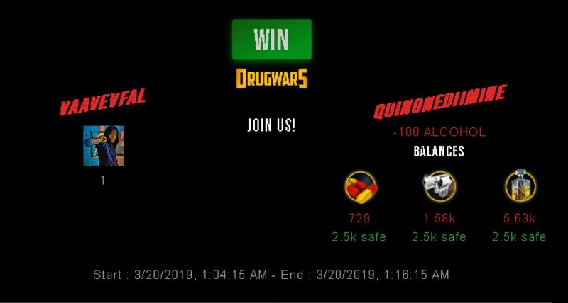 Check my latest fight ! vaavevfal vs quinonediiminevaavevfal (25)in #drugwars-fight • 7 years ago #gaming #fight #dw