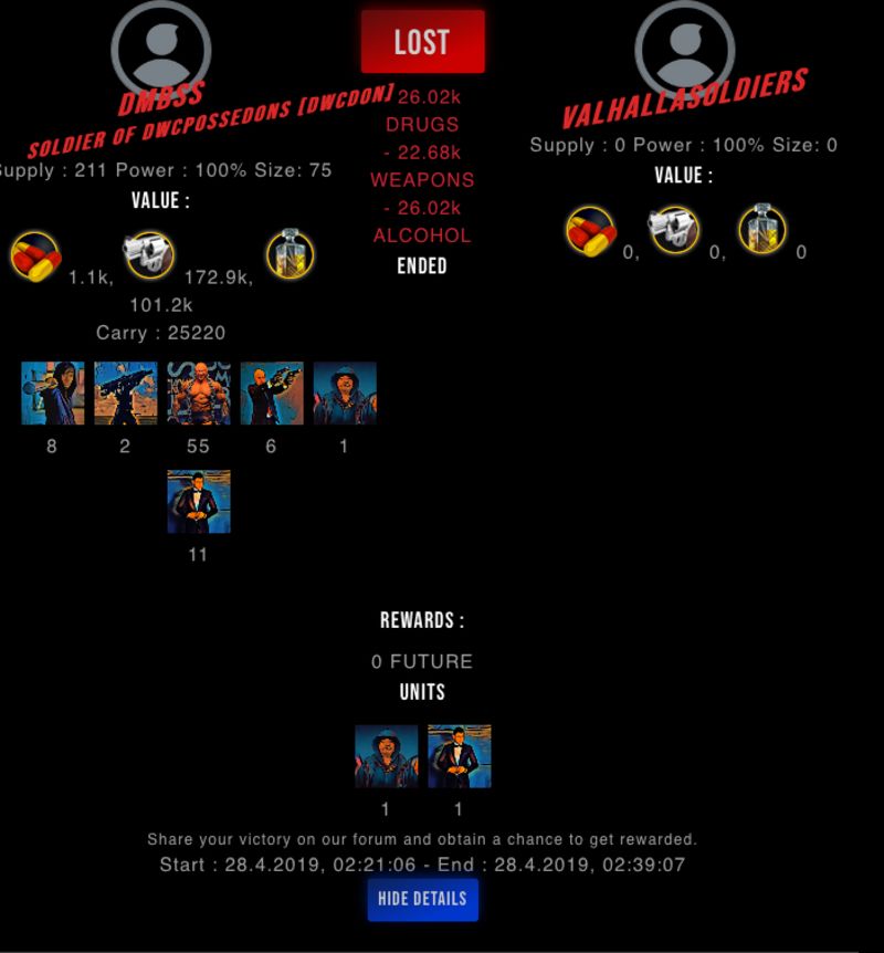 Congratulations @valhallasoldiers ! Your fight received an upvote of 5% from the Dealer as incentive for your activity and as a gratitude for your support to the game.