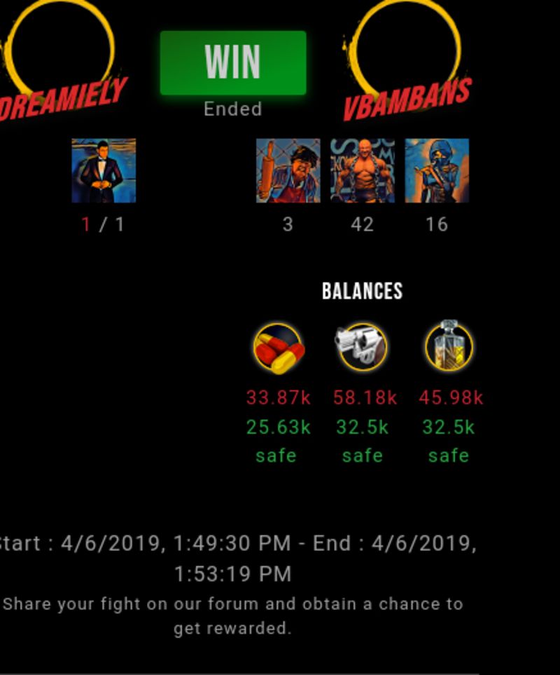 Check my latest fight ! dreamiely vs vbambansvbambans (46)in #drugwars-fight • 7 years ago #gaming #fight #dw