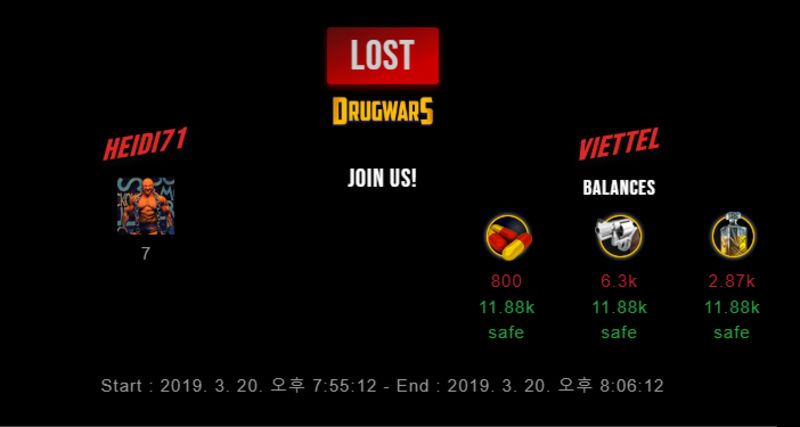 Check my latest fight ! heidi71 vs viettelviettel (25)in #drugwars-fight • 7 years ago #gaming #fight #dw