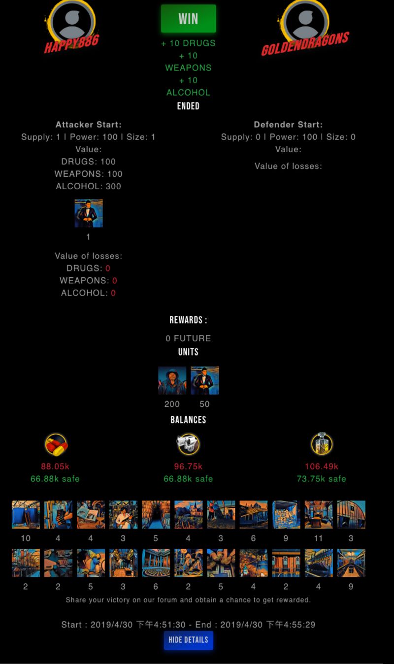 Check my latest fight ! happy886 vs goldendragonswalker886 (58)in #drugwars-fight • 7 years ago #gaming #fight #dw