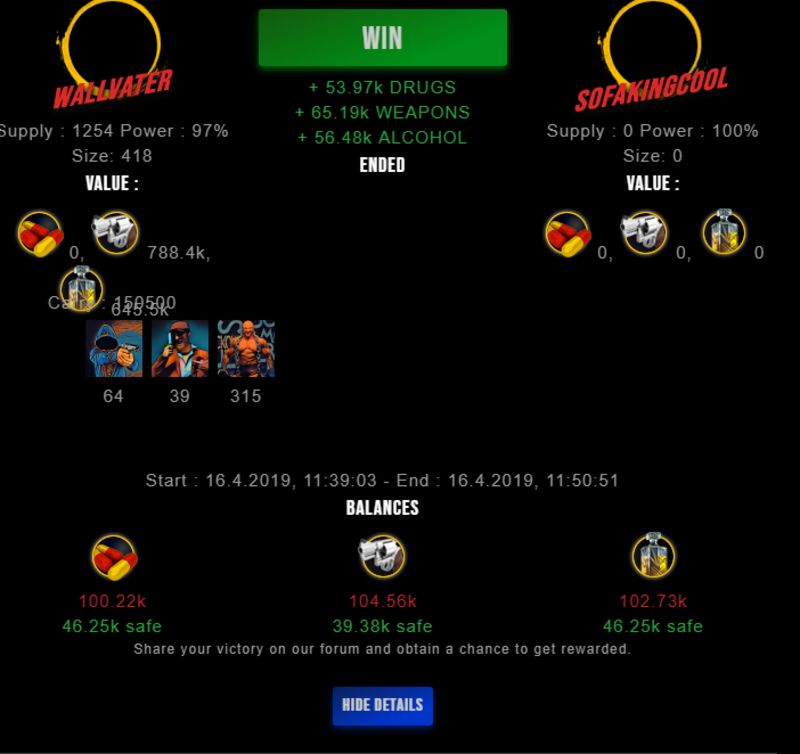 Congratulations @wallvater ! Your fight received an upvote of 1.9% from the King Dealer as incentive for your activity and as a gratitude for your support to the game.