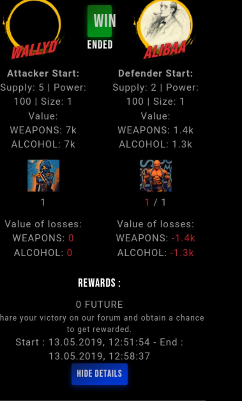 Congratulations @wallyd ! Your fight received an upvote of 11% from the Dealer as incentive for your activity and as a gratitude for your support to the game.