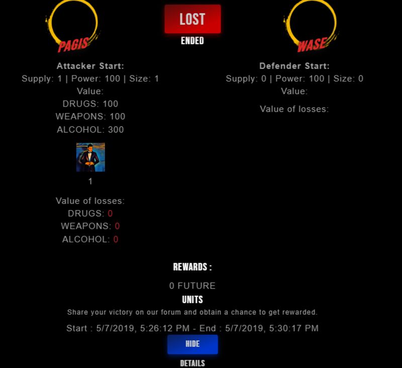 Congratulations @wase ! Your fight received an upvote of 2.3% from the King Dealer as incentive for your activity and as a gratitude for your support to the game.