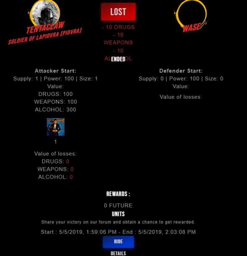 Congratulations @wase ! Your fight received an upvote of 2.1% from the King Dealer as incentive for your activity and as a gratitude for your support to the game.