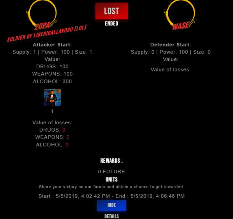 Congratulations @wase ! Your fight received an upvote of 2.2% from the King Dealer as incentive for your activity and as a gratitude for your support to the game.