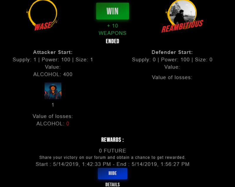 Check my latest fight ! wase vs reambitiouswase (50)in #drugwars-fight • 7 years ago #gaming #fight #dw