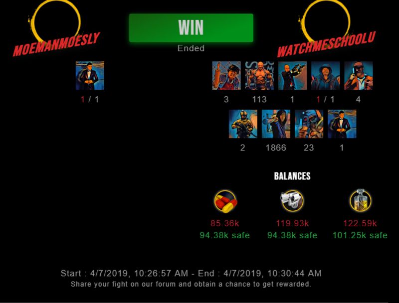 Check my latest fight ! moemanmoesly vs watchmeschooluwatchmeschoolu (43)in #drugwars-fight • 7 years ago #gaming #fight #dw