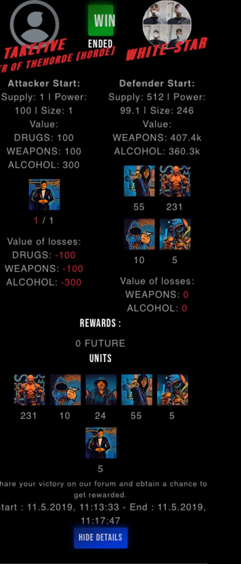 Check my latest fight ! takefive vs white-starwhite-star (48)in #drugwars-fight • 7 years ago #gaming #fight #dw