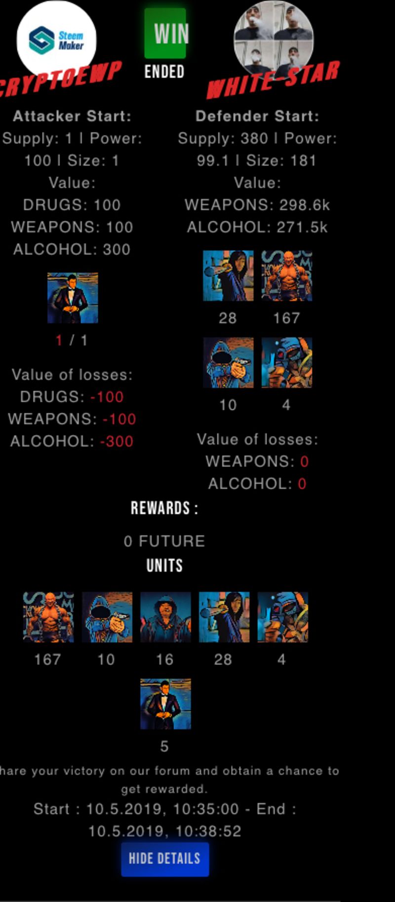 Check my latest fight ! cryptoewp vs white-starwhite-star (48)in #drugwars-fight • 7 years ago #gaming #fight #dw
