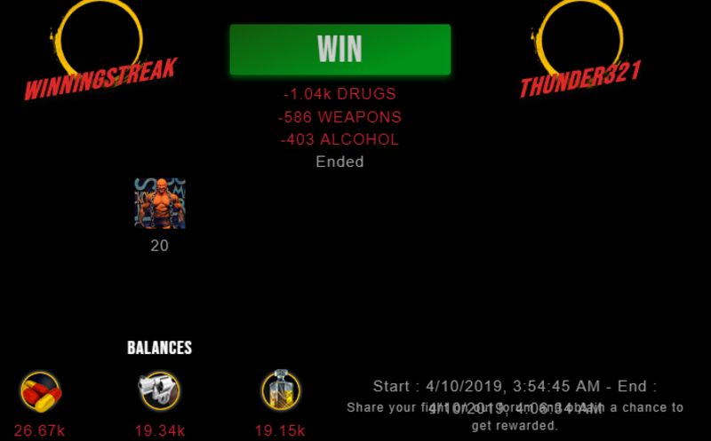 Congratulations @winningstreak ! Your fight received an upvote of 2.5% from the King Dealer as incentive for your activity and as a gratitude for your support to the game.