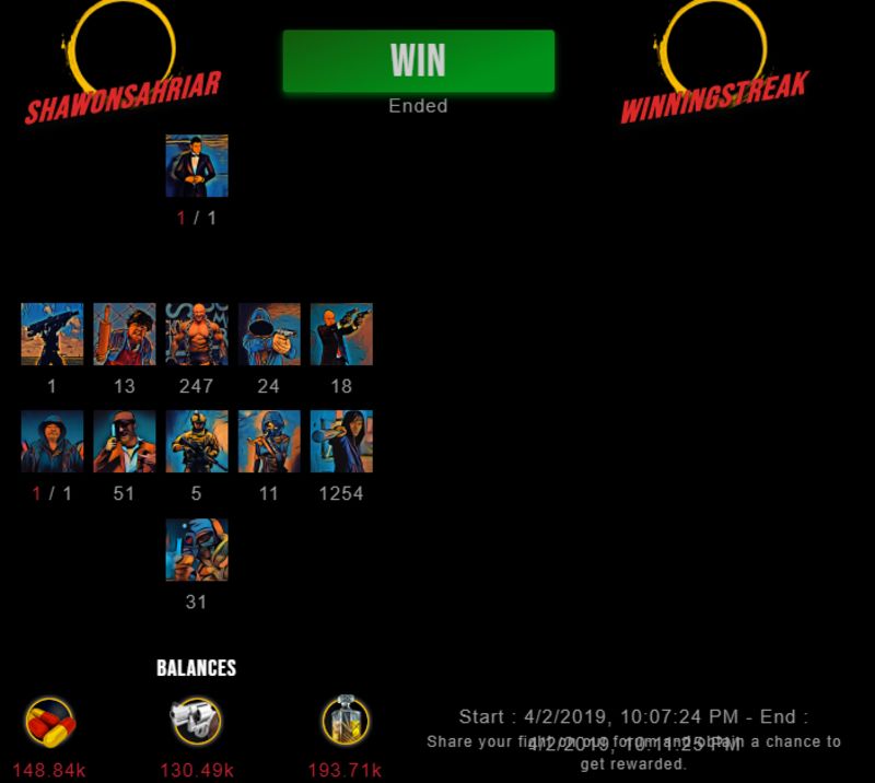 Congratulations @winningstreak ! Your fight received an upvote of 1.8% from the King Dealer as incentive for your activity and as a gratitude for your support to the game.