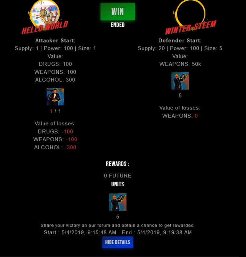 Check my latest fight ! hello world vs winter-steemwinter-steem (39)in #drugwars-fight • 7 years ago #gaming #fight #dw