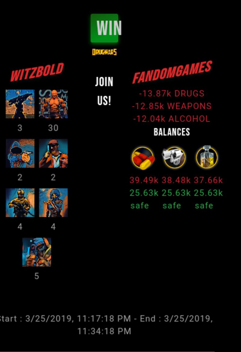 Check my latest fight ! witzbold vs fandomgameswitzbold (51)in #drugwars-fight • 7 years ago #gaming #fight #dw
