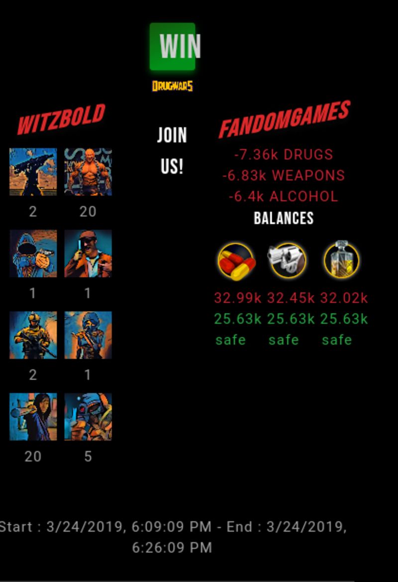 Check my latest fight ! witzbold vs fandomgameswitzbold (51)in #drugwars-fight • 7 years ago #gaming #fight #dw