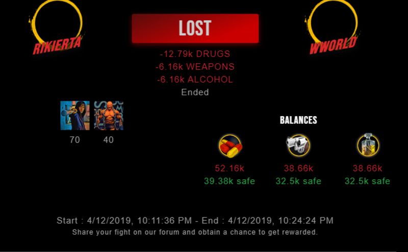 Check my latest fight ! rikierta vs wworldwworld (25)in #drugwars-fight • 7 years ago #gaming #fight #dw