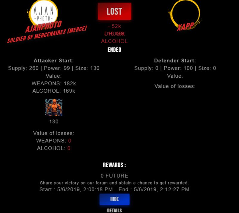 Congratulations @xapp ! Your fight received an upvote of 2% from the King Dealer as incentive for your activity and as a gratitude for your support to the game.