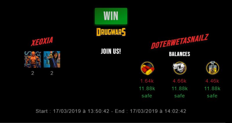 Check my latest fight ! xeoxia vs doterwetasnailzxeoxia (28)in #drugwars-fight • 7 years ago #gaming #fight #dw