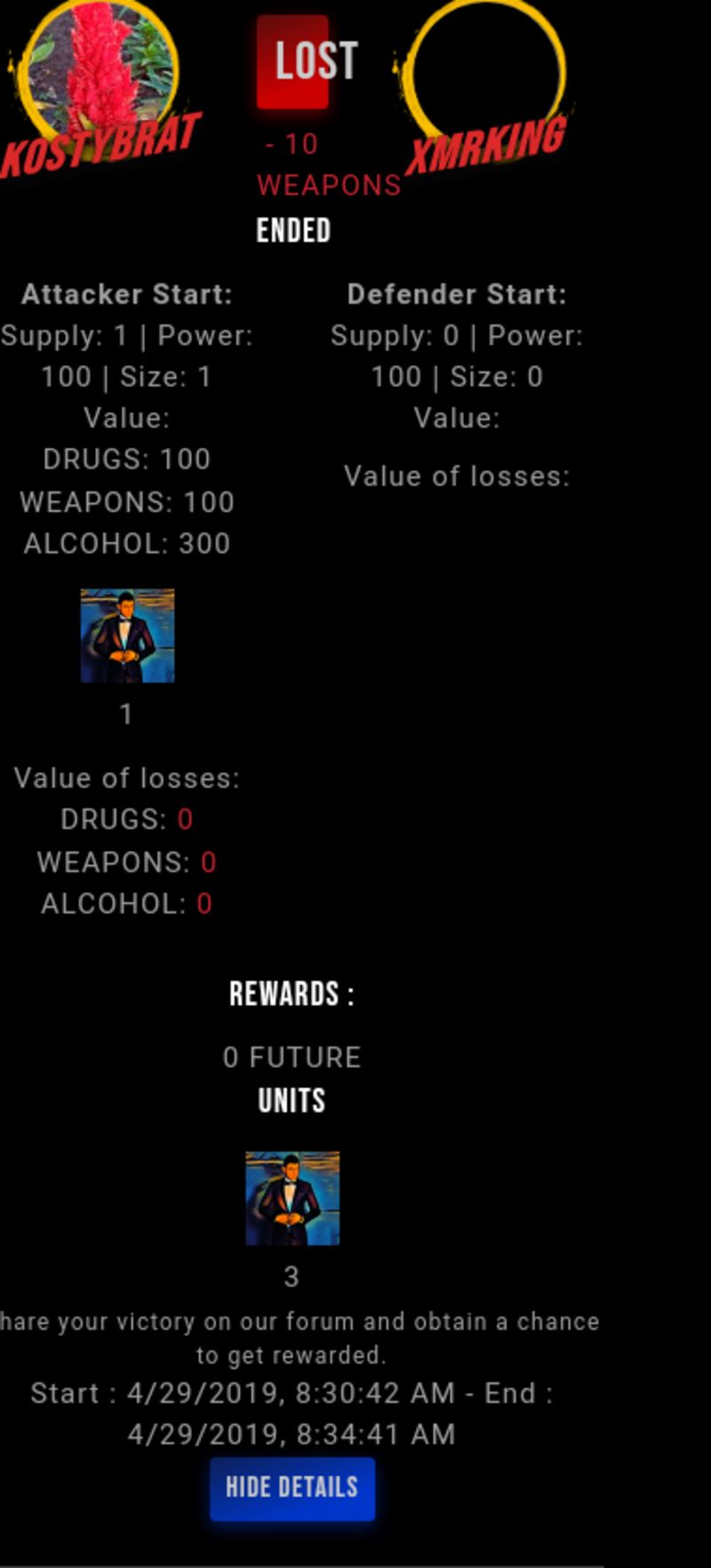 Check my latest fight ! kostybrat vs xmrkingxmrking (51)in #drugwars-fight • 7 years ago #gaming #fight #dw
