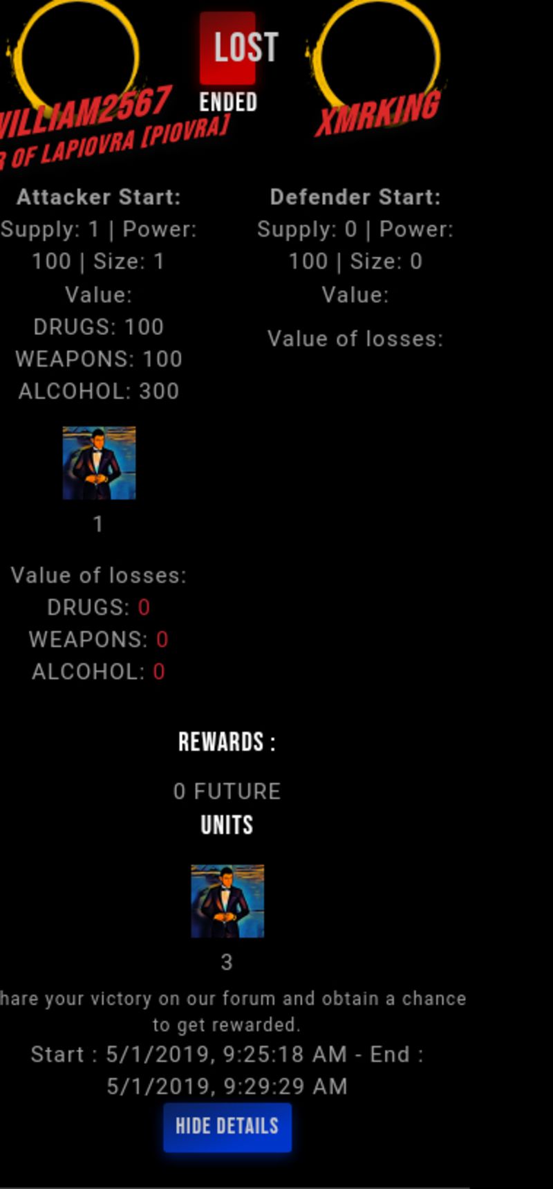 Check my latest fight ! william2567 vs xmrkingxmrking (51)in #drugwars-fight • 7 years ago #gaming #fight #dw
