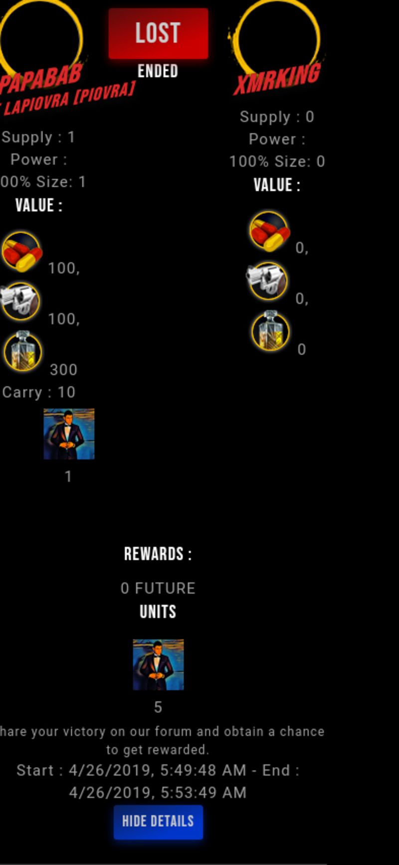 Check my latest fight ! papabab vs xmrkingxmrking (51)in #drugwars-fight • 7 years ago #gaming #fight #dw